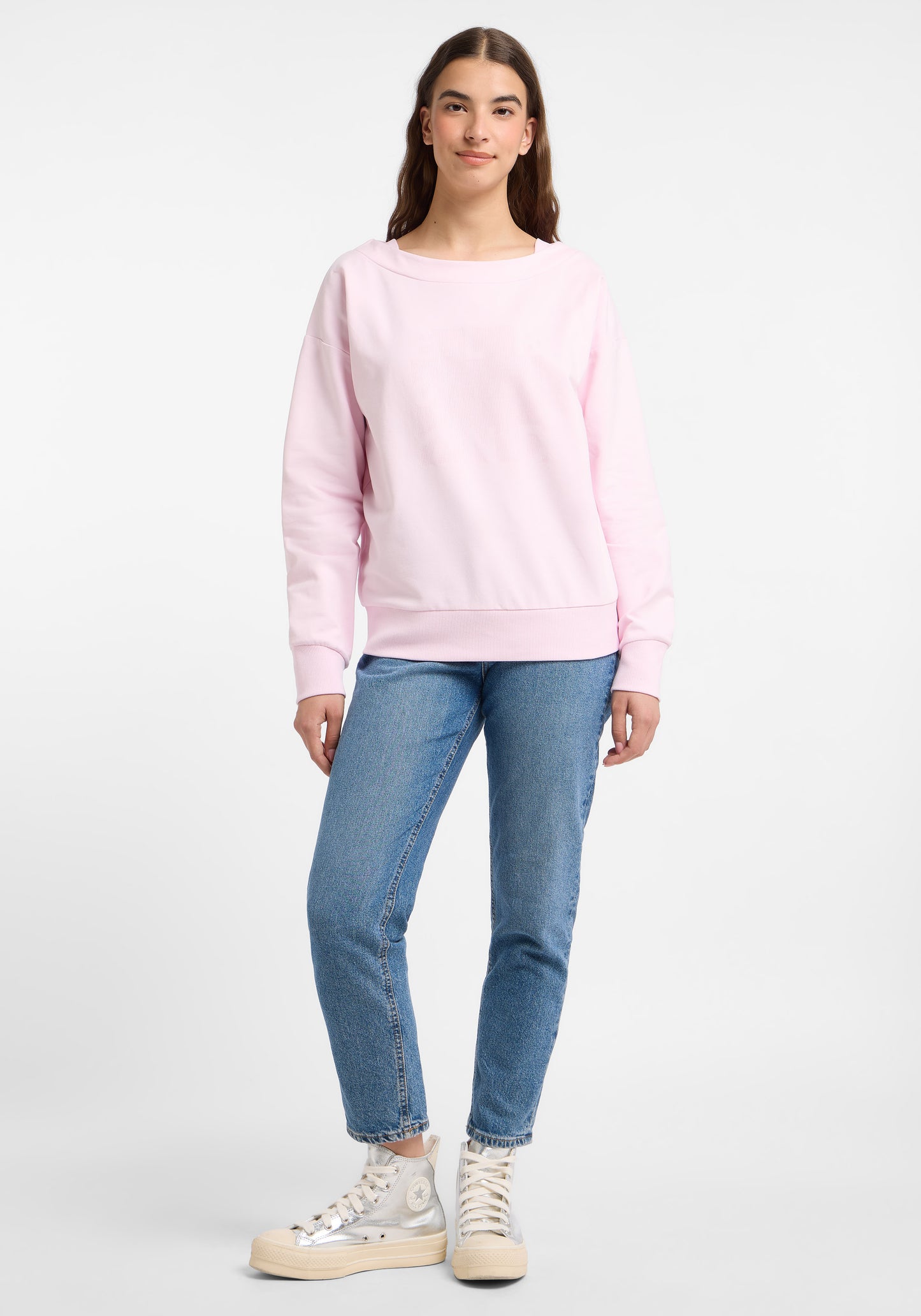 Onze Elbsand Fea Sweater biedt casual comfort met een losse pasvorm en zachte, elastische sweatstof. De binnenkant is heerlijk geborsteld voor optimaal draagcomfort. De verfijnde bootnek geeft een vrouwelijke touch, aangevuld met elastische ribboorden aan mouwen en zoom voor een perfecte pasvorm. Een elegante, licht glanzende rubberprint aan de voorkant zorgt voor stijlvolle accenten. Deze sweater is een bestseller met een modieuze uitstraling, ideaal voor dagelijks gebruik, thuis of onderweg. Samenstelling: 95% katoen, 5% elastaan. Wasvoorschrift: machinewas 30 graden, fijnwasprogramma, niet geschikt voor de droger.