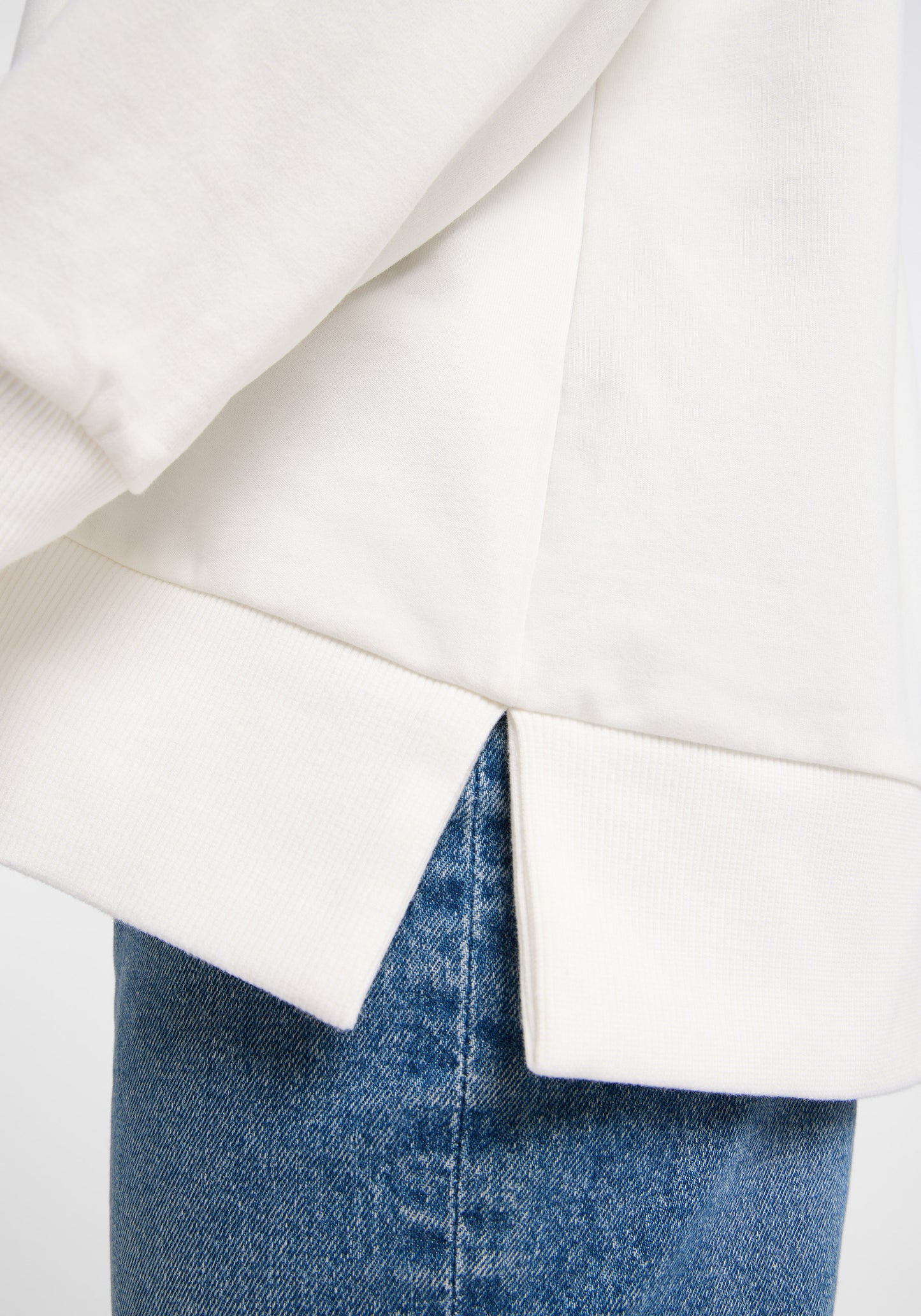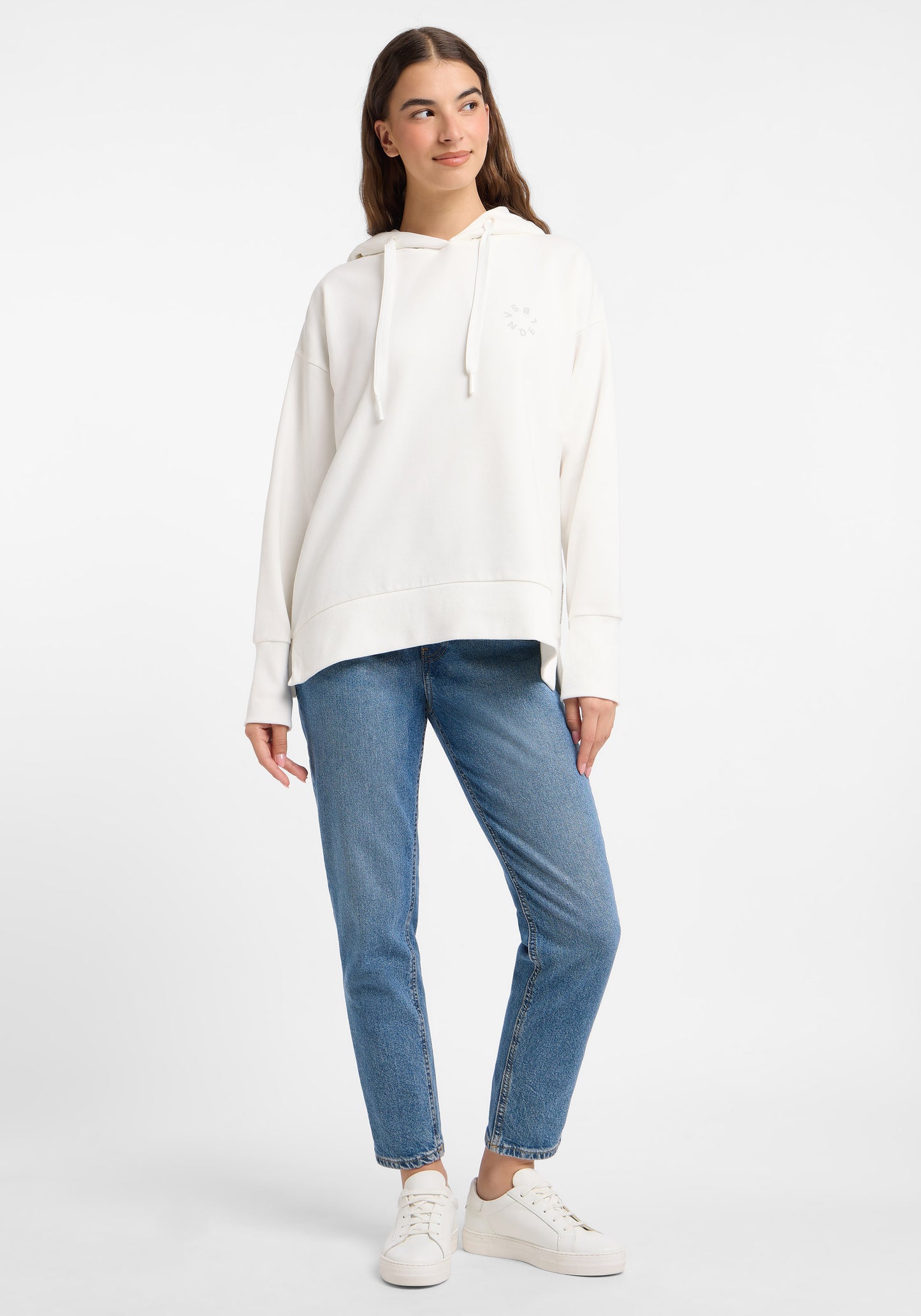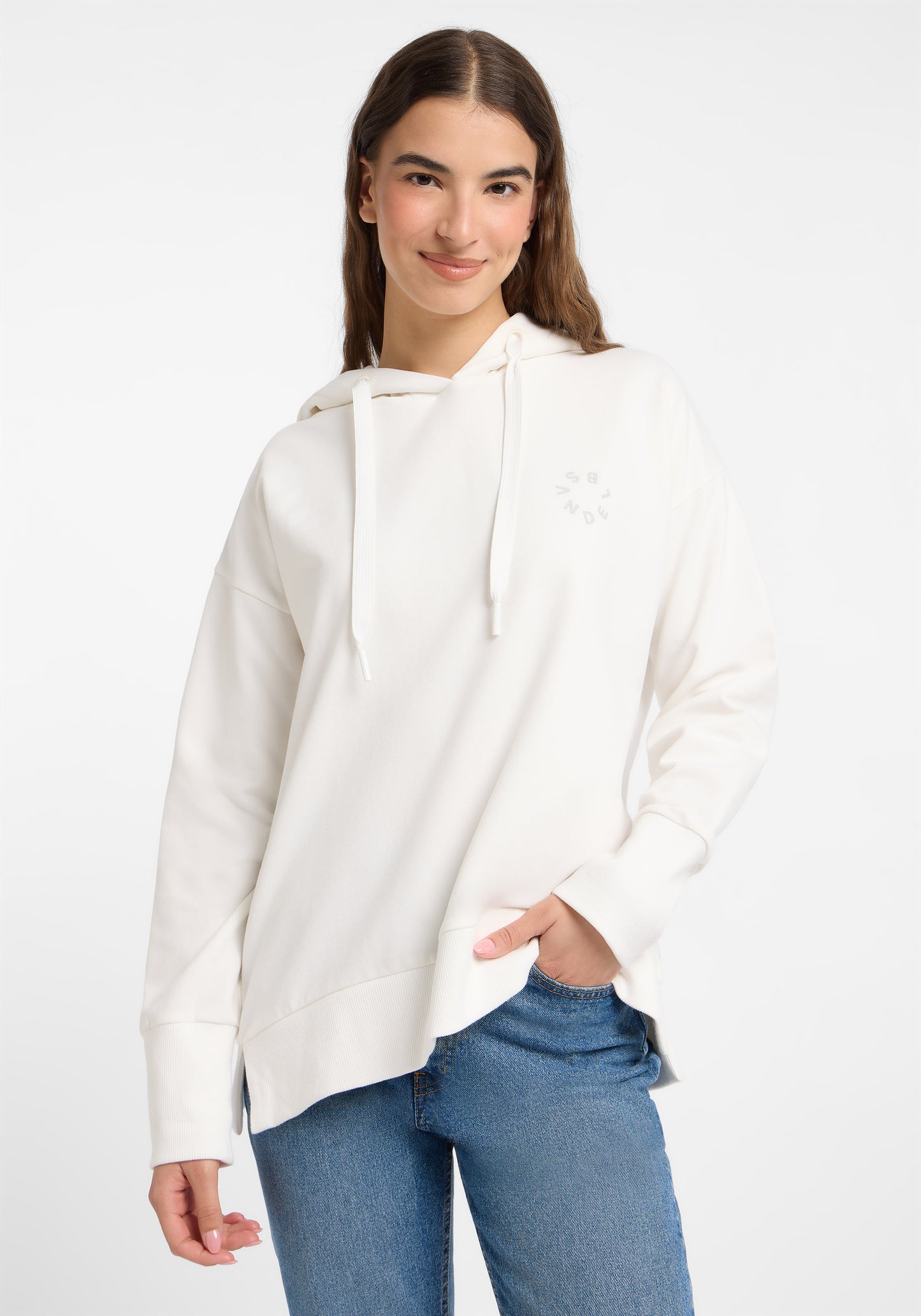 De Elbsand Leah Hoodie is een losvallend sweatshirt met capuchon, dat overtuigt door zijn zachte, elastische en knusse, opgeruwde sweatkwaliteit. De binnenkant is geborsteld voor extra comfort. De hoodie heeft een capuchon met een koord in dezelfde kleur en branded koorduiteinden, doorgestikte schouders, geribde boorden aan mouwen en zoom, en kleine zijsplitten. Een subtiele logo-print op de borst en achterkant maakt het ontwerp compleet. Deze hoodie is een casual basic voor dagelijks gebruik, ideaal voor vrouwen die houden van een ontspannen stijl en prettig draagcomfort. Samenstelling: 95% katoen, 5% elastaan. Wasinstructies: machinewas op 30 graden, fijnwasprogramma, niet geschikt voor de droger.