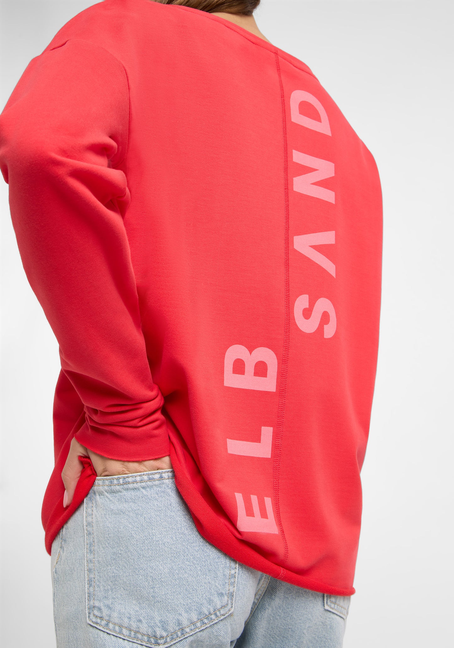 Riane sweatshirt van Elbsand is jouw nieuwe must-have voor ontspannen dagen. Het sweatshirt heeft een loszittende pasvorm en is gemaakt van een zachte, elastische sweatstof, wat zorgt voor een comfortabel draaggevoel of je nu thuis bent, onderweg of een stadwandeling maakt. Met zijn casual U-hals, doorgestikte schouders en onafgewerkte rolzomen biedt de Riane precies de look die je graag draagt: stijlvol, authentiek en uiterst comfortabel. Een bijzonder detail is de verticaal geplaatste, halftransparante print aan de achterkant, die het sweatshirt een moderne touch geeft.