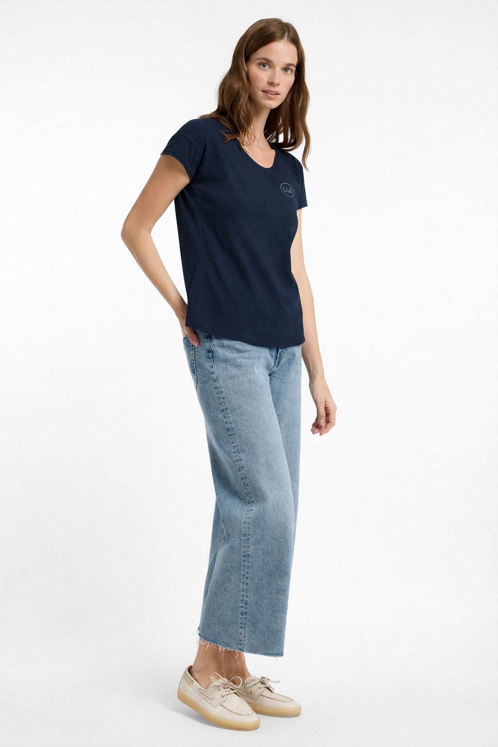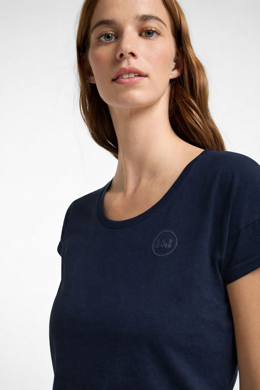 Het Elbsand Ragne T-shirt is een normaal gesneden shirt van lichtgewicht single jersey kwaliteit met een zachte touch. Het valt op door een klassieke ronde hals en een raw-edge afwerking aan de zoom voor een ontspannen, urban look. Een zachte flockprint op de borst en in de nek zorgt voor subtiele accenten. De samenstelling van 50% katoen en 50% polyester zorgt voor comfortabel draagcomfort. Het sportieve T-shirt is veelzijdig te combineren en ideaal voor dagelijks gebruik, ontspannen momenten op het strand of stedentrips. Wasvoorschrift: machinewas op 30 graden, fijn wasprogramma, niet geschikt voor de droger.