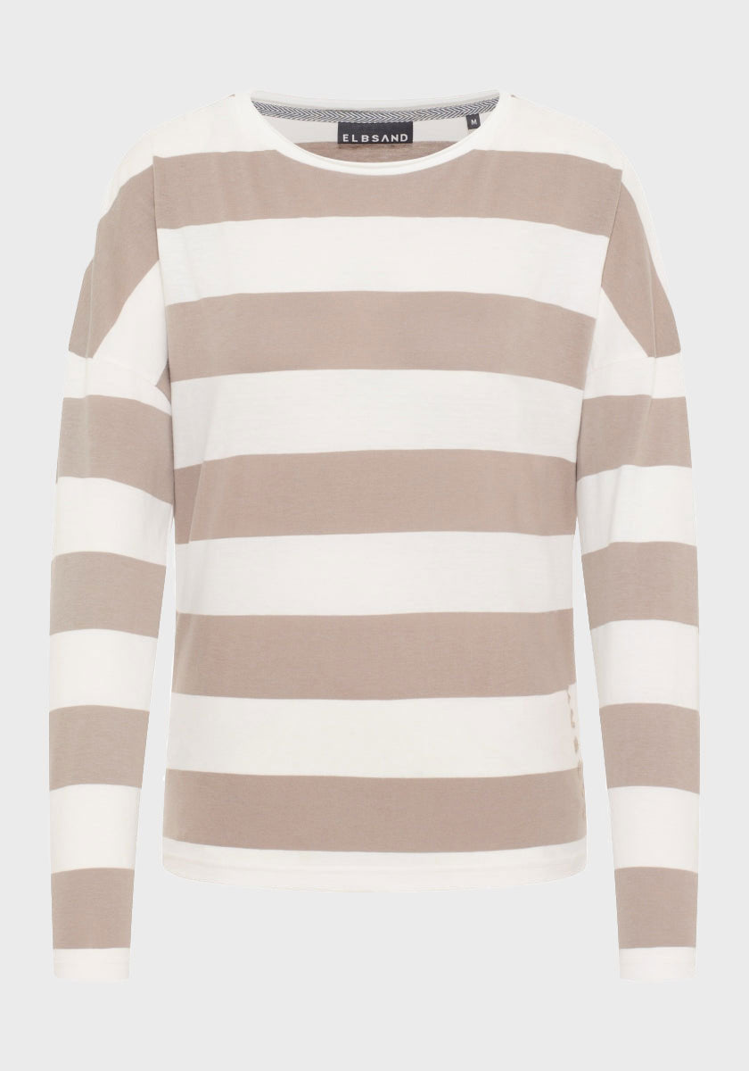 Selma T-shirt losse pasvorm | Soft Mud - Bright White Stripe