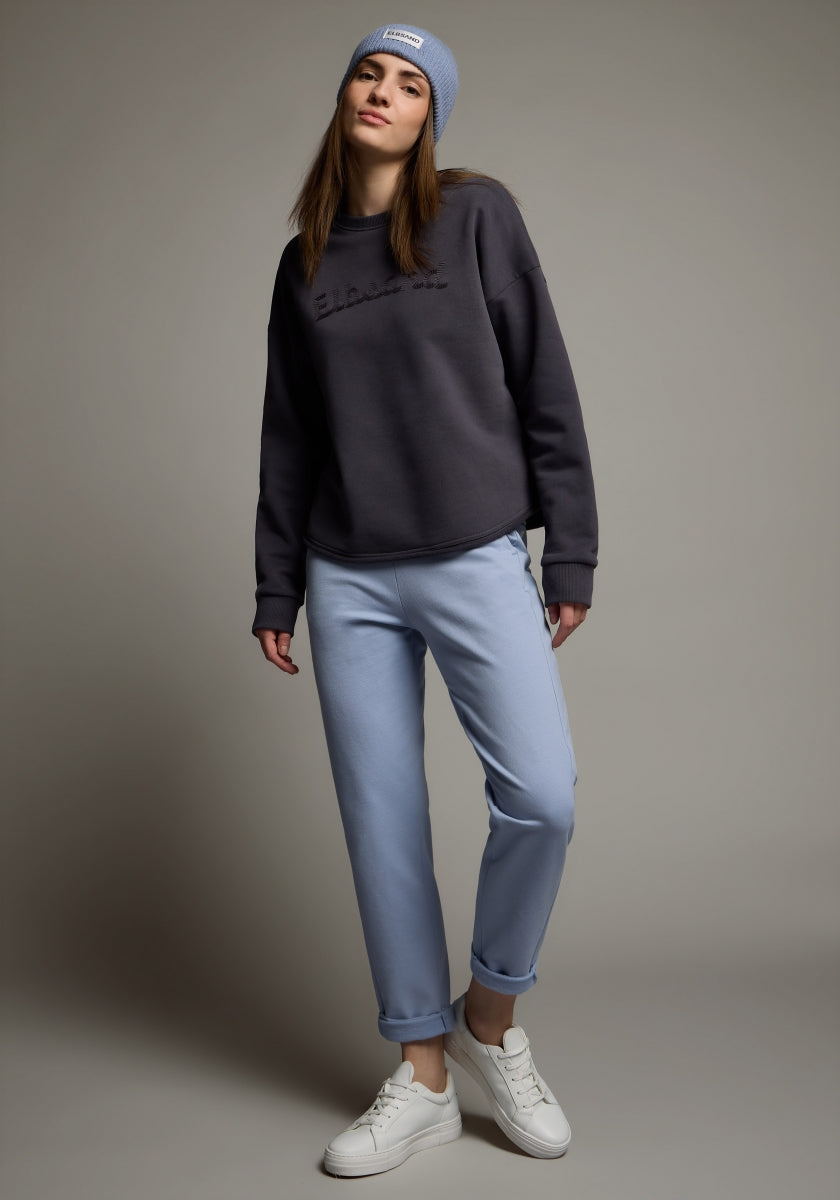 Ons Elbsand Edrun Sweatshirt heeft een losse pasvorm en is ideaal voor ontspannen dagen. De zachte, knuffelachtige sweatstof met een geborstelde binnenkant zorgt voor optimaal draagcomfort. Details zoals de ronde hals, overstaande schouders en een afgeronde zoom geven het sweatshirt een moderne uitstraling. De subtiele ELBSAND-borduring op de voorkant maakt een stijlvol statement. Dit sweatshirt is veelzijdig te combineren, bijvoorbeeld met jeans of joggingsbroeken, en is perfect voor vrouwen die houden van een comfortabele maar toch urban stijl.