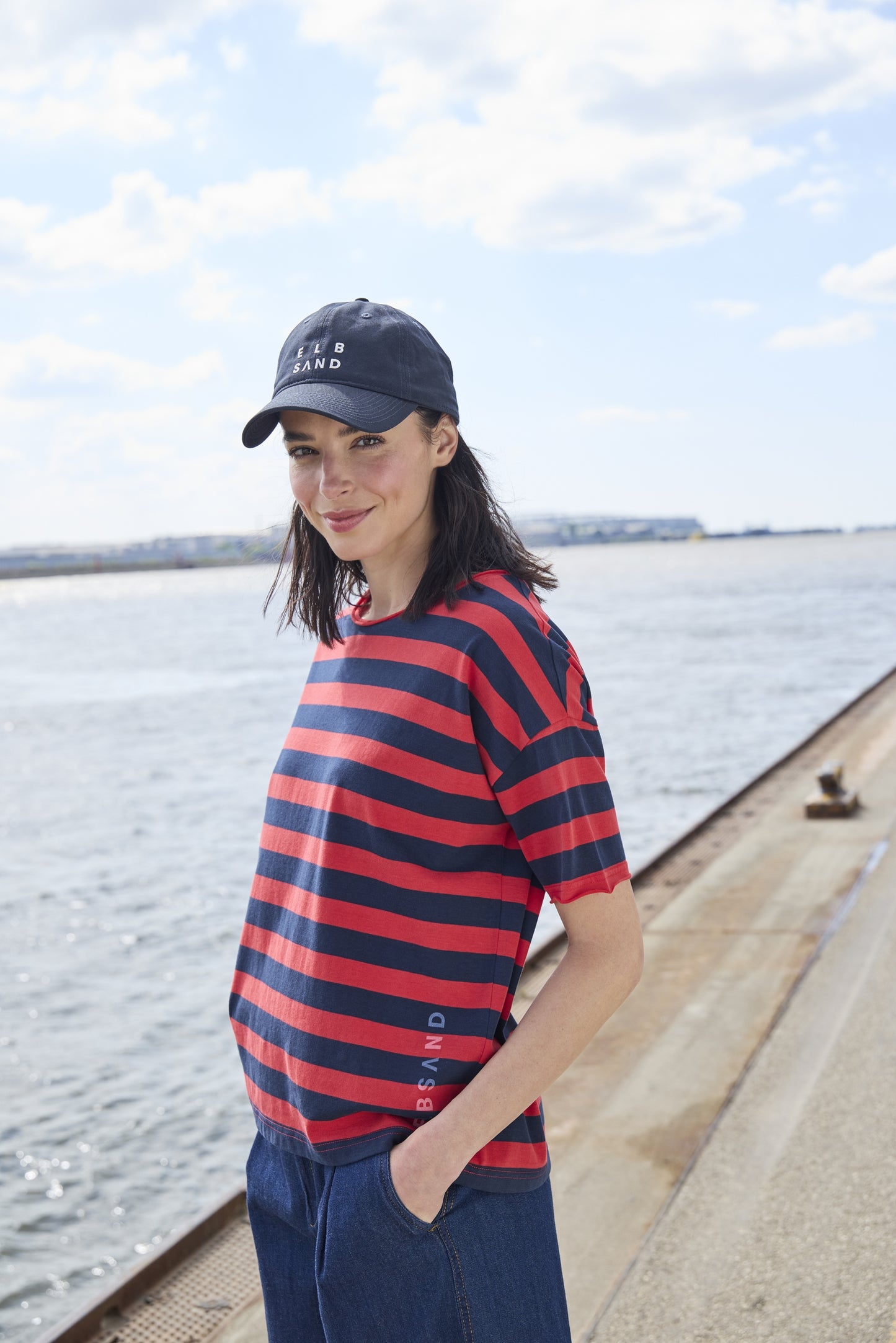Het Elbsand Luani T-shirt is een ruimvallend, comfortabel T-shirt voor dames, gemaakt van lichtgewicht single jersey in een streepdessin met een zachte touch. Het heeft doorgestikte schouders en een opengewerkte rollrand aan de hals en mouwzomen. Een zachte, halftransparante logo-opdruk siert de linkerzijde. Het T-shirt is verkrijgbaar in frisse, tijdloze kleurcombinaties en is ideaal voor ontspannen dagen en stijlvolle zomerse looks. Samenstelling: 50% katoen, 50% polyester. Wasvoorschrift: machinewas op 30 graden, fijnwasprogramma, niet geschikt voor droger.