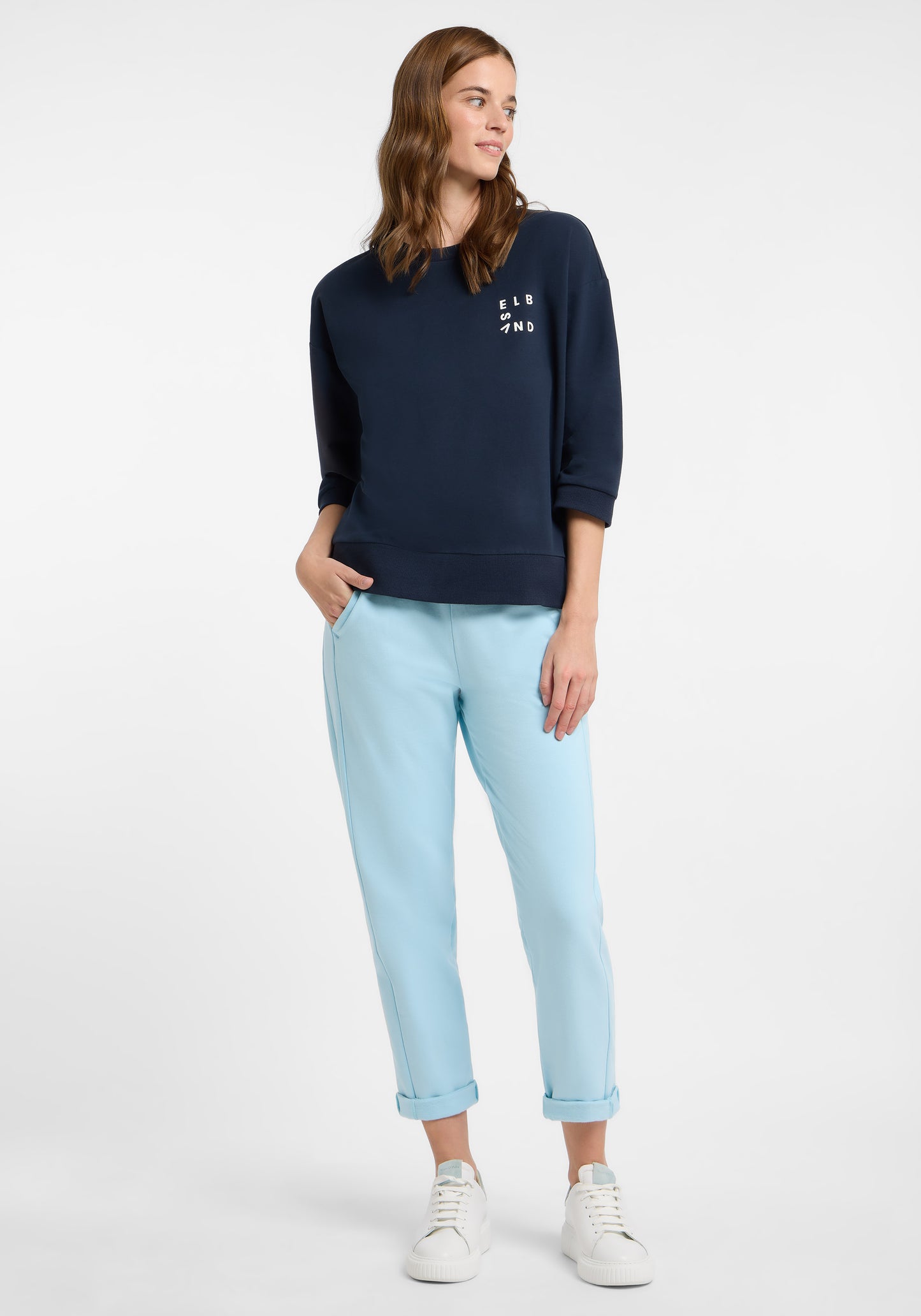 Onze Elbsand Parvin Sweatshirt is een loszittend sweatshirt gemaakt van zachte, elastische sweatstof met een zacht, geborsteld interieur. Het heeft een ronde hals met ribgebreide boord, licht over de schouders vallende mouwen en 3/4 mouwen met boord aan het uiteinde. Een kleine, contrasterende rubberprint op de borst zorgt voor een subtiel accent. Dit sweatshirt is ideaal voor het tussenseizoen en biedt een ontspannen, comfortabele pasvorm voor relaxte dagen. Perfect voor wandelingen, koffie met vrienden of momenten thuis. Samenstelling: 95% katoen, 5% elastaan.