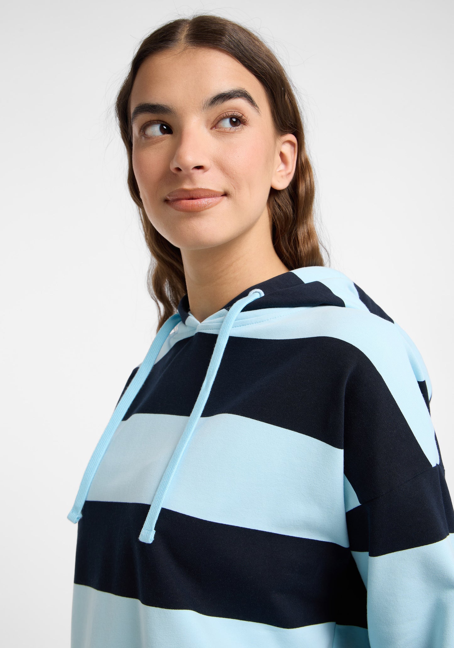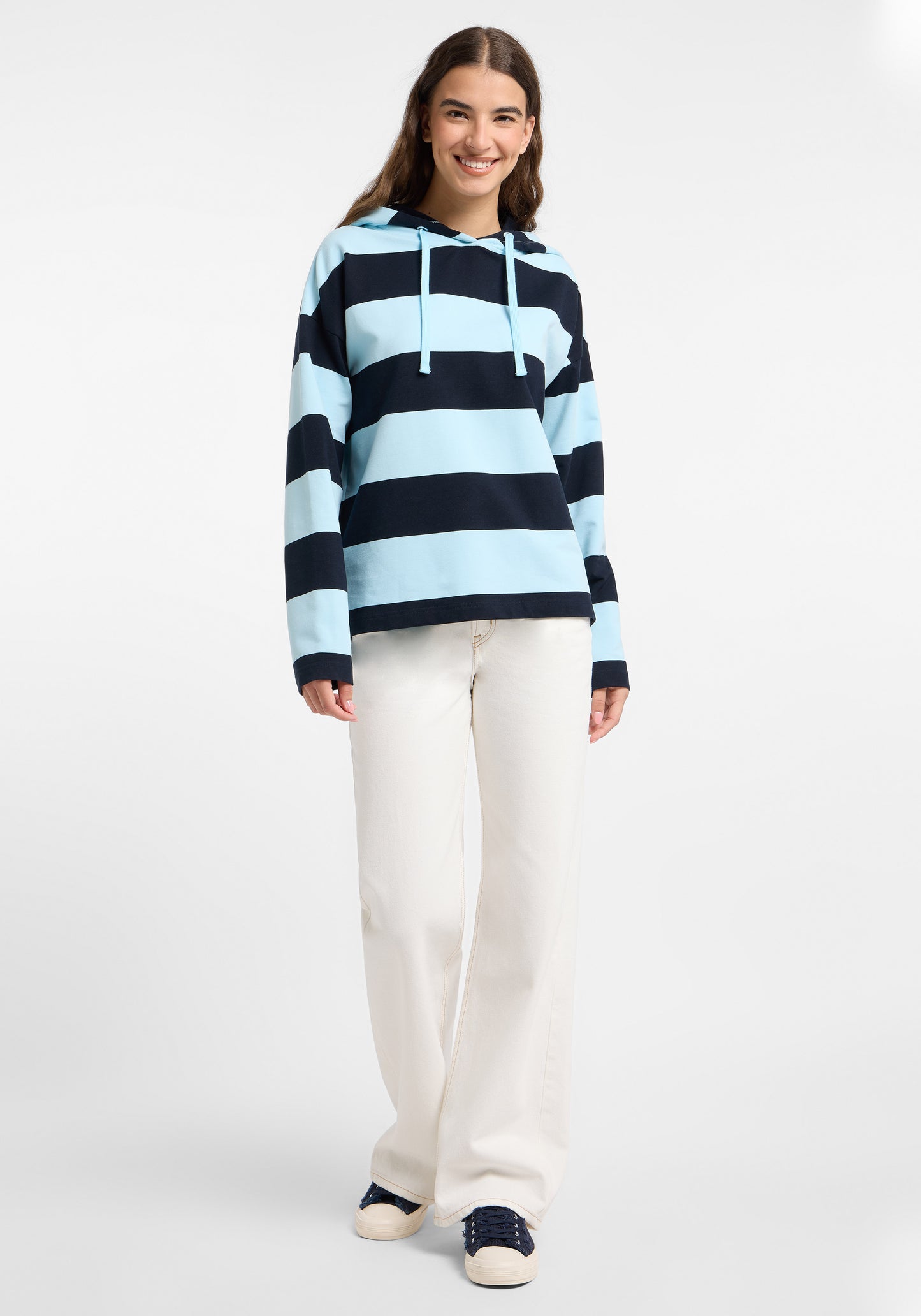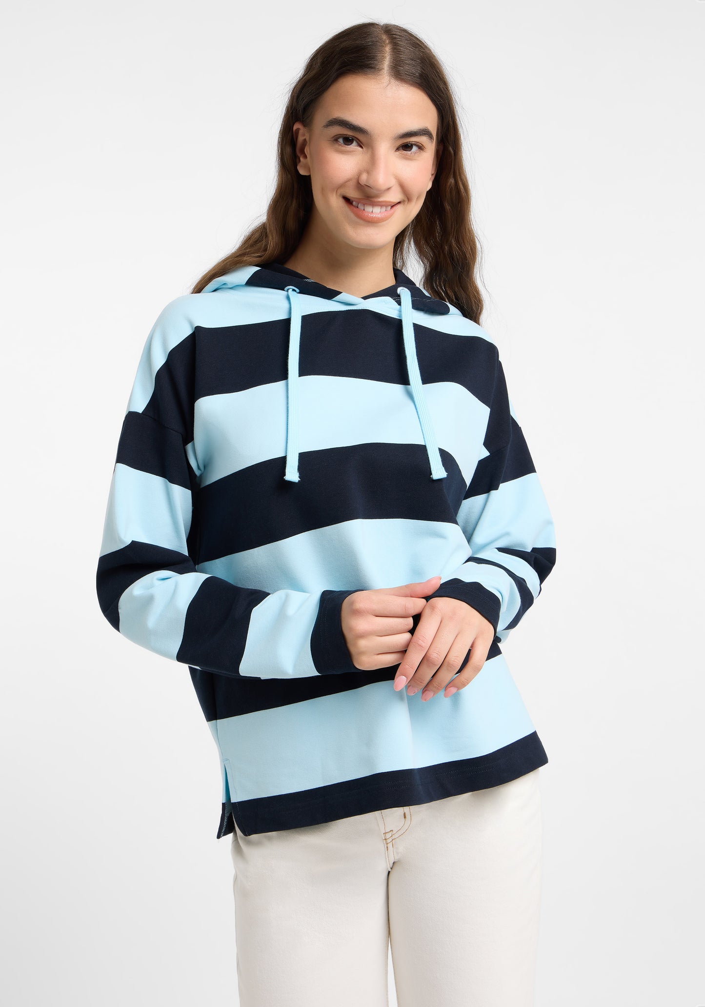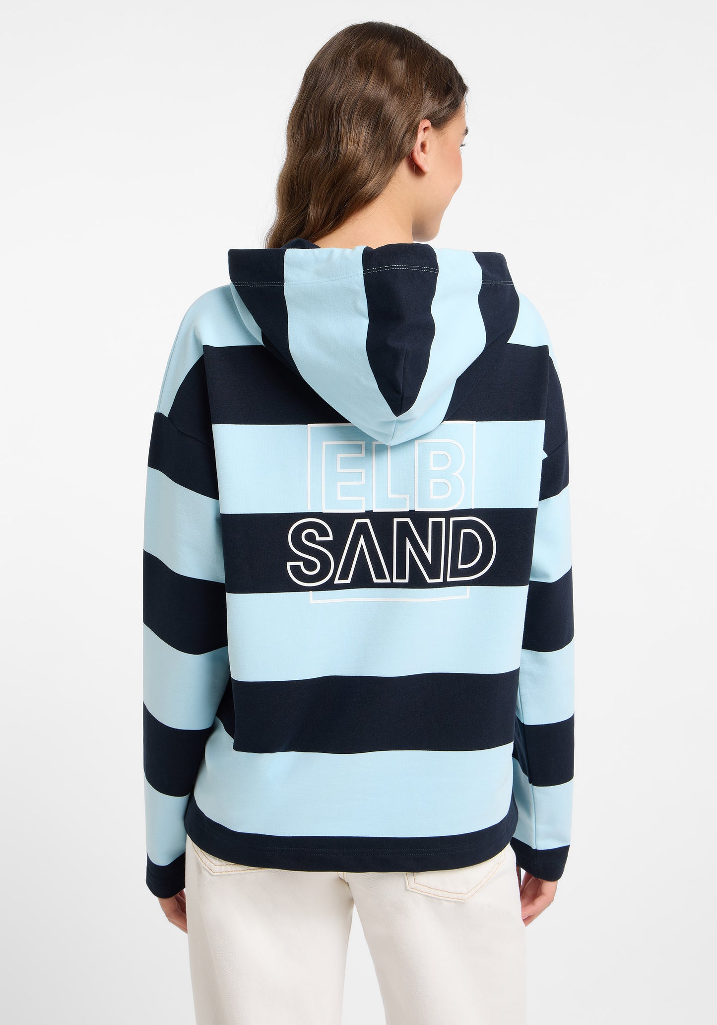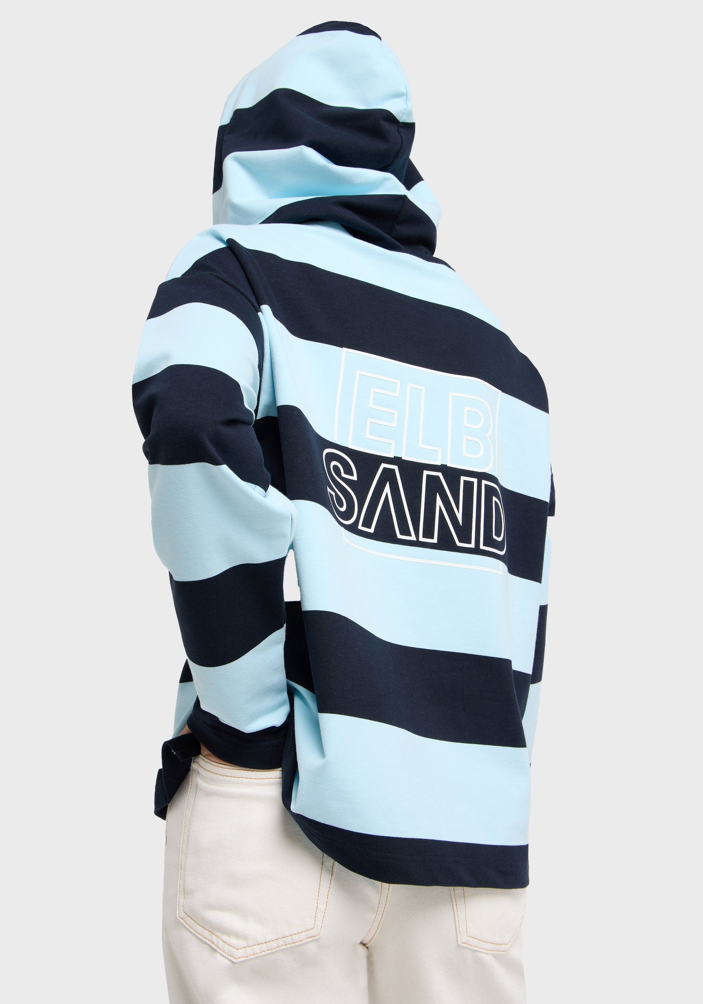 Onze Elbsand Eydis Hoodie biedt een losse, comfortabele stijl met zachte, elastische sweatstof en een modern streeppatroon. De hoodie heeft een capuchon met een trekkoord, raglanmouwen, rechte mouwen en een stijlvolle, zachte rubberprint op de achterkant. Perfect te combineren met jeans, chino of culotte, is deze gestreepte hoodie ideaal voor vrouwen die op zoek zijn naar een moderne, comfortabele en toch stijlvolle hoodie. De materiaalsamenstelling is 95% katoen en 5% elastaan. Wasvoorschriften raden aan om het in de wasmachine op 30 graden met een fijnwasprogramma te wassen, zonder droger te gebruiken.