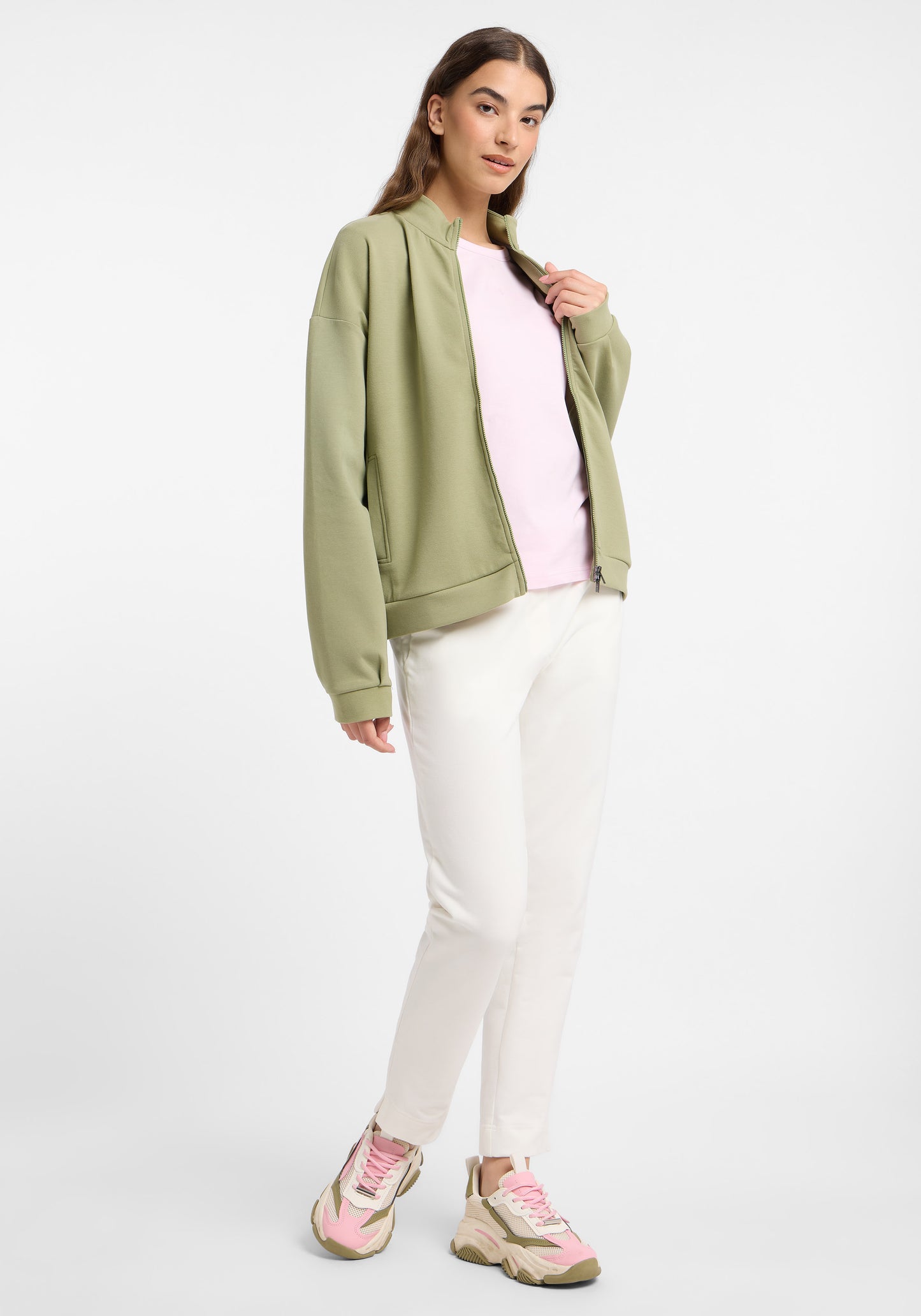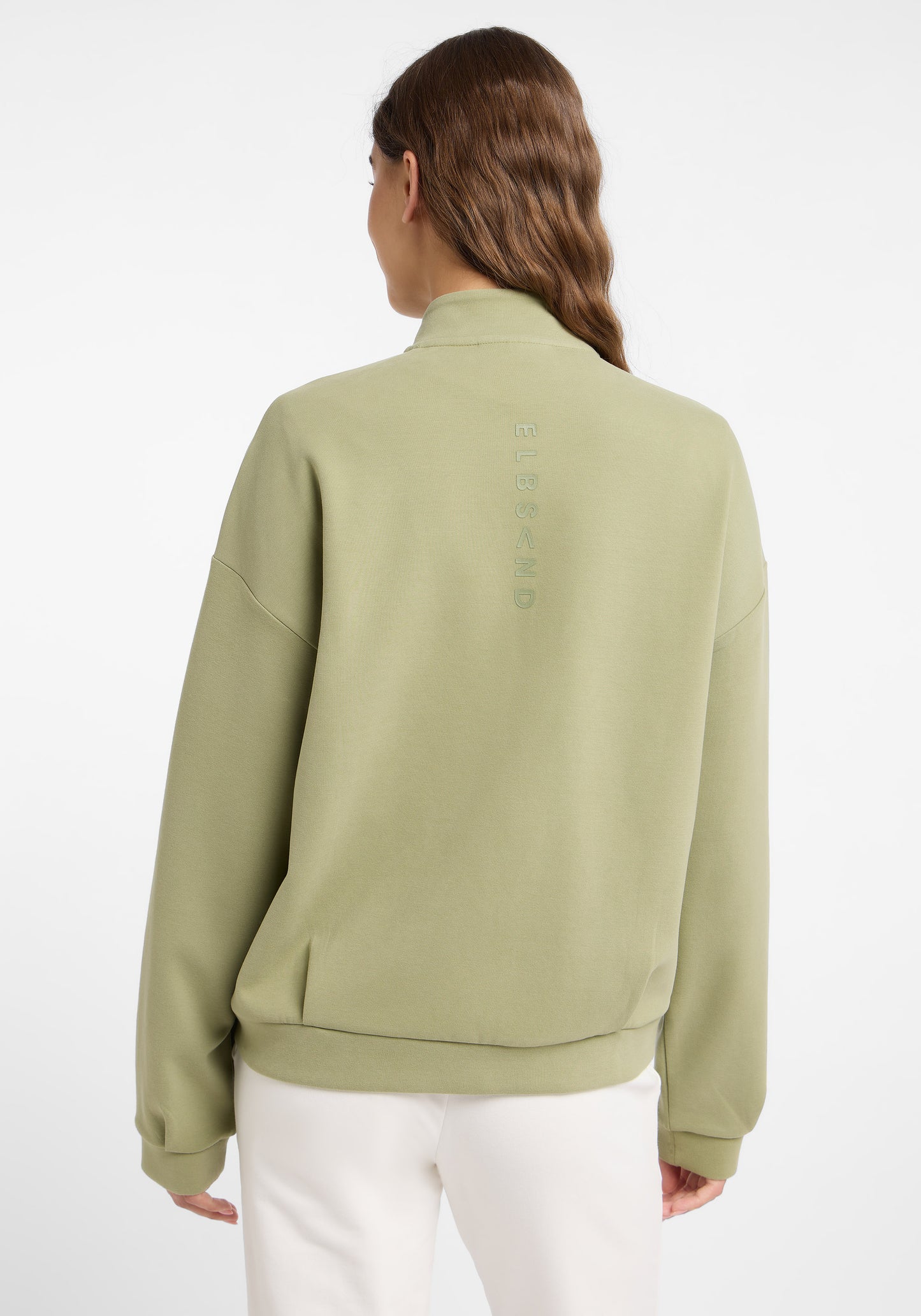 De Elbsand Jalma Sweatjack is een losvallend zipjack met een opstaande kraag, gemaakt van zachte interlock sweatstof. Het biedt een moderne, ontspannen uitstraling, zijzakken en een praktische ritssluiting met twee richtingen. Ingewerkte plooien aan de achterkant creëren een subtiel bomberjack-effect, terwijl de rubberprint op de rug een strakke, premium touch geeft. Deze sweatjack combineert comfort en stijl, ideaal voor een casual dagelijks gebruik en hoogwaardige vrouwelijkemode. Samenstelling: 82% biologisch katoen, 14% polyester, 4% elastaan. Wasvoorschrift: machinewas op 30 graden, delicaat programma, niet geschikt voor de droger.