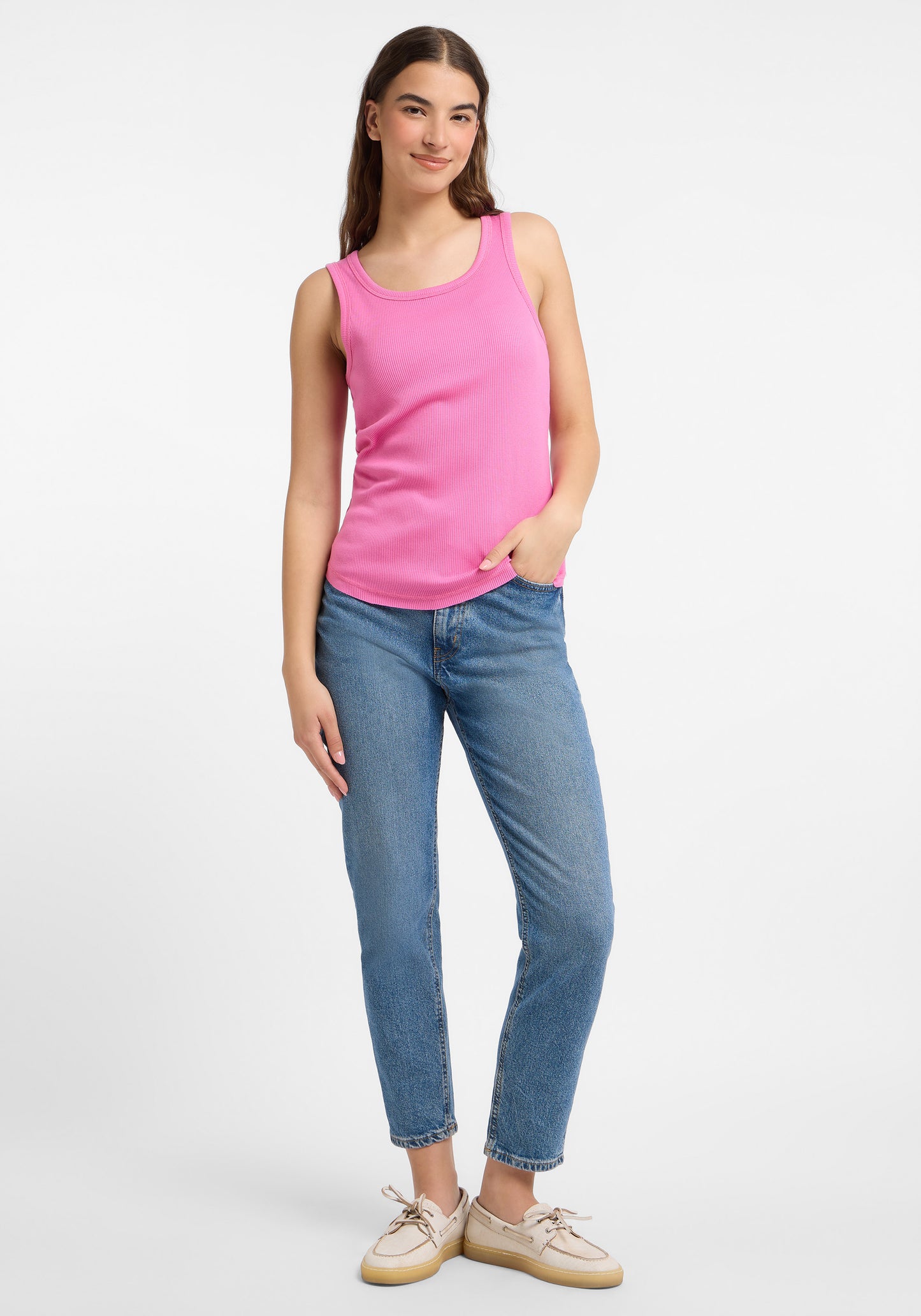 Het Elbsand Jara Top is een regular fit, normaal gesneden tanktop gemaakt van zachte ribjersey, die prettig aanvoelt op de huid en zijn vorm behoudt. Het heeft een ronde halslijn en een subtiele, zachte logo-print op het achterpand, wat het hoogwaardige basic-topje een verfijnde merkaccent geeft. Veelzijdig te combineren, is dit topje ideaal voor dagelijks gebruik of onder een blouse, bij een jogger of solo op warme dagen. Samenstelling: 50% modal, 46% katoen, 4% elastan. Wasvoorschrift: Machinewas op 30 graden in een fijnwasprogramma, niet geschikt voor de droger.
