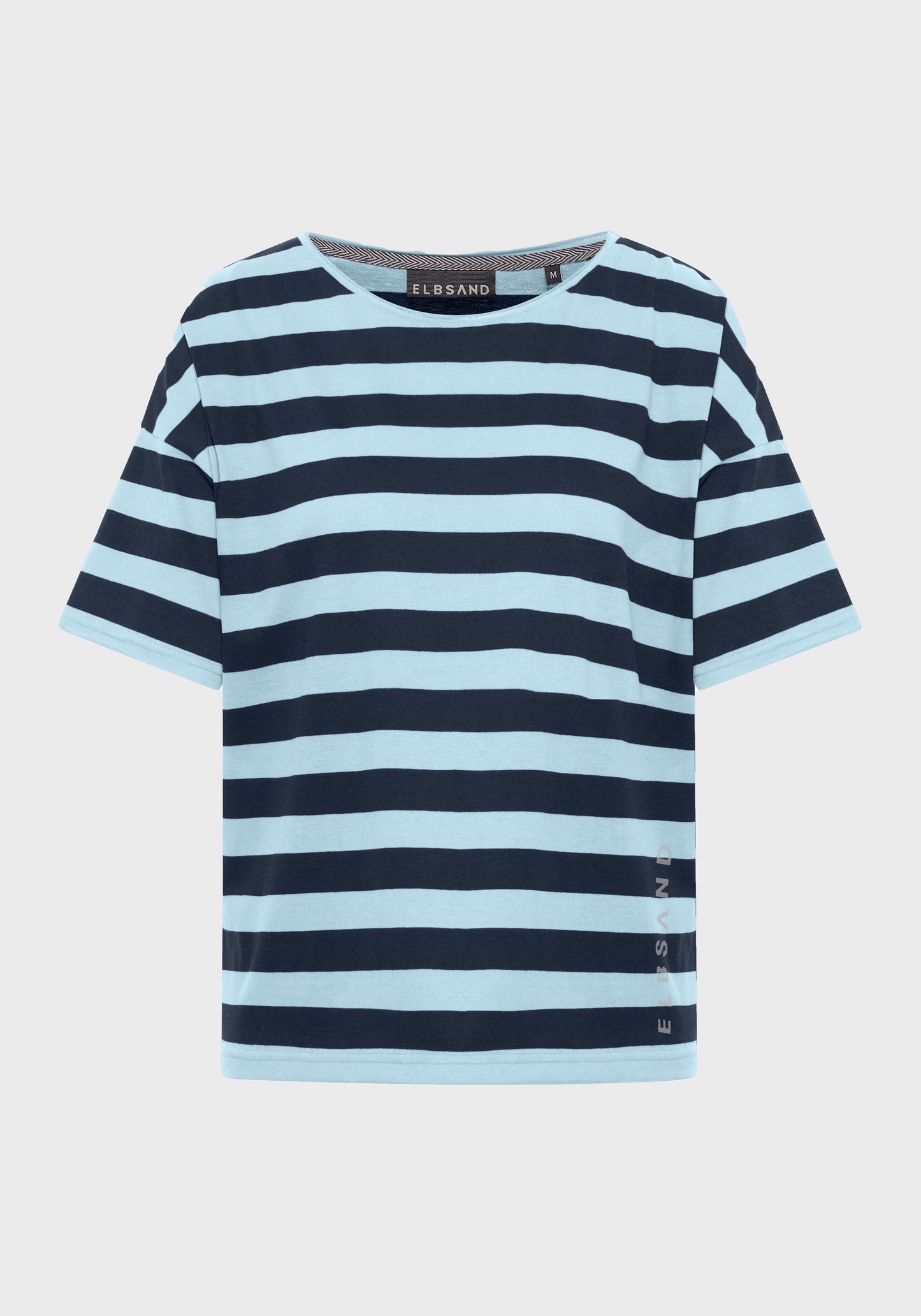Het Elbsand Luani T-shirt is een ruimvallend, comfortabel T-shirt voor dames, gemaakt van lichtgewicht single jersey in een streepdessin met een zachte touch. Het heeft doorgestikte schouders en een opengewerkte rollrand aan de hals en mouwzomen. Een zachte, halftransparante logo-opdruk siert de linkerzijde. Het T-shirt is verkrijgbaar in frisse, tijdloze kleurcombinaties en is ideaal voor ontspannen dagen en stijlvolle zomerse looks. Samenstelling: 50% katoen, 50% polyester. Wasvoorschrift: machinewas op 30 graden, fijnwasprogramma, niet geschikt voor droger.