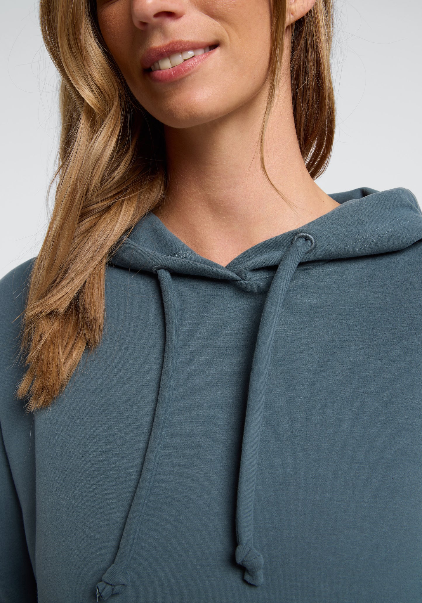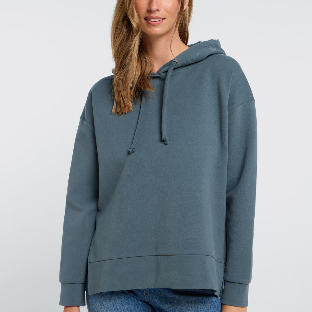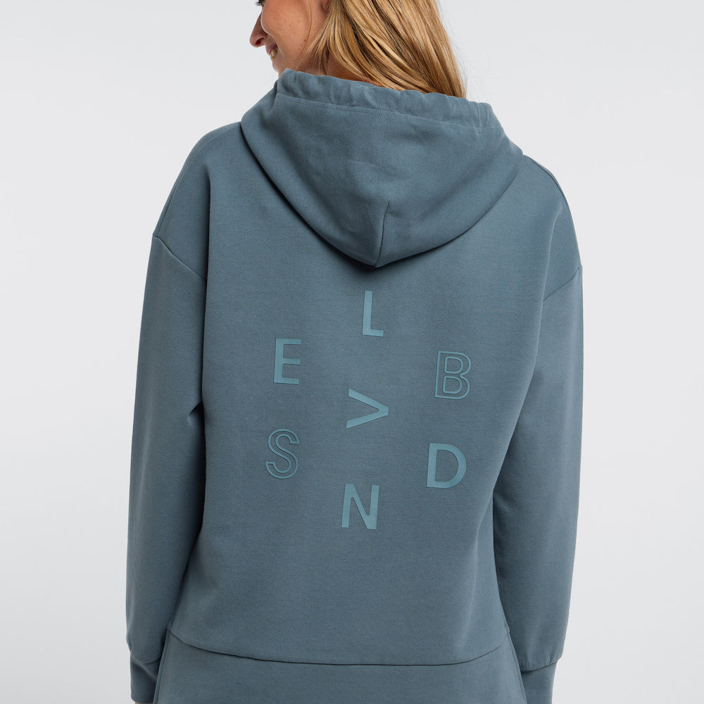 The design stands out with smart details: the double-layered hood with soft drawcord provides the classic hoodie look, while the stylish high side slits create a modern silhouette. A refined, soft rubber print on the back adds a subtle accent and gives the hoodie that special something.
