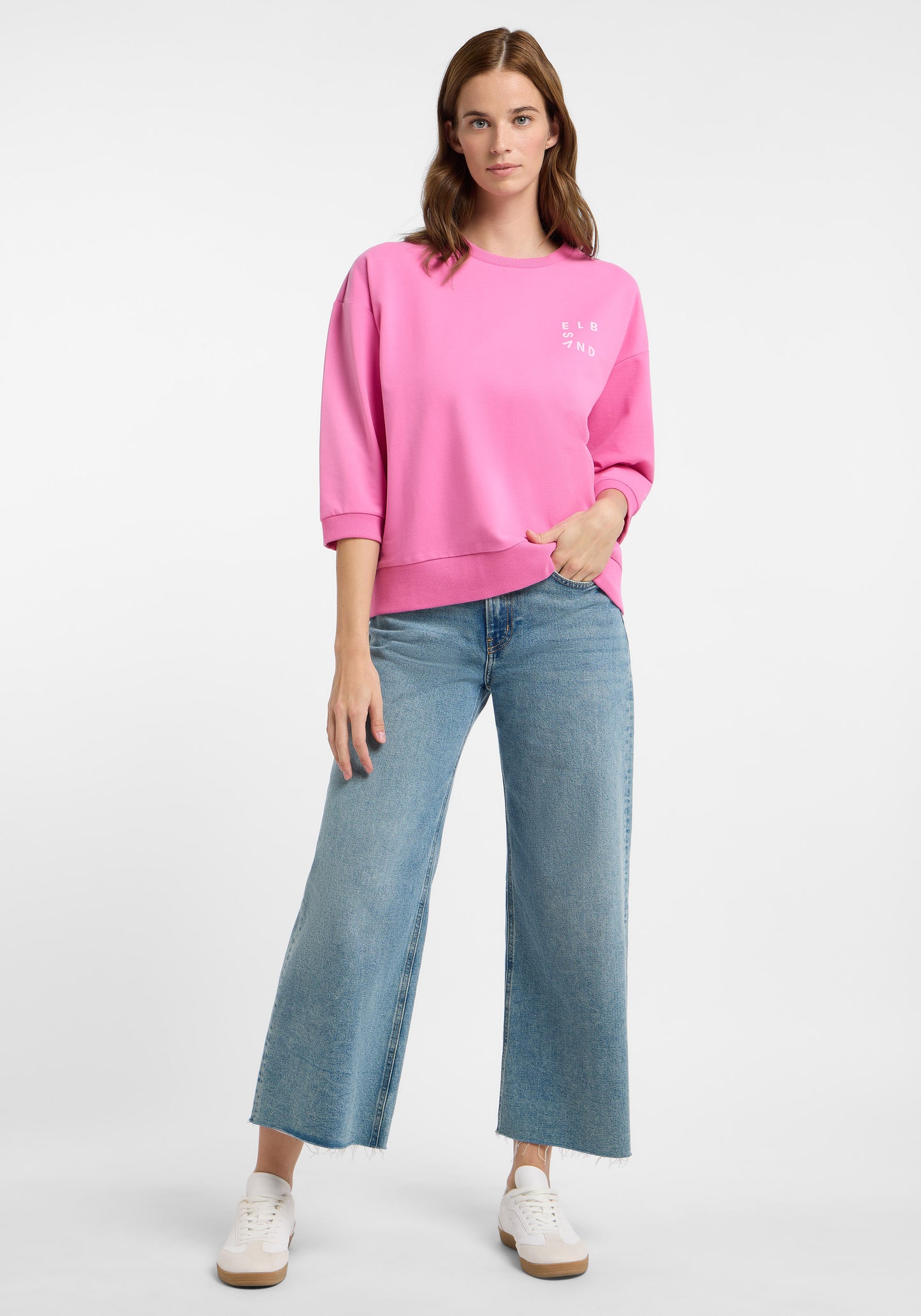 Onze Elbsand Parvin Sweatshirt is een loszittend sweatshirt gemaakt van zachte, elastische sweatstof met een zacht, geborsteld interieur. Het heeft een ronde hals met ribgebreide boord, licht over de schouders vallende mouwen en 3/4 mouwen met boord aan het uiteinde. Een kleine, contrasterende rubberprint op de borst zorgt voor een subtiel accent. Dit sweatshirt is ideaal voor het tussenseizoen en biedt een ontspannen, comfortabele pasvorm voor relaxte dagen. Perfect voor wandelingen, koffie met vrienden of momenten thuis. Samenstelling: 95% katoen, 5% elastaan.
