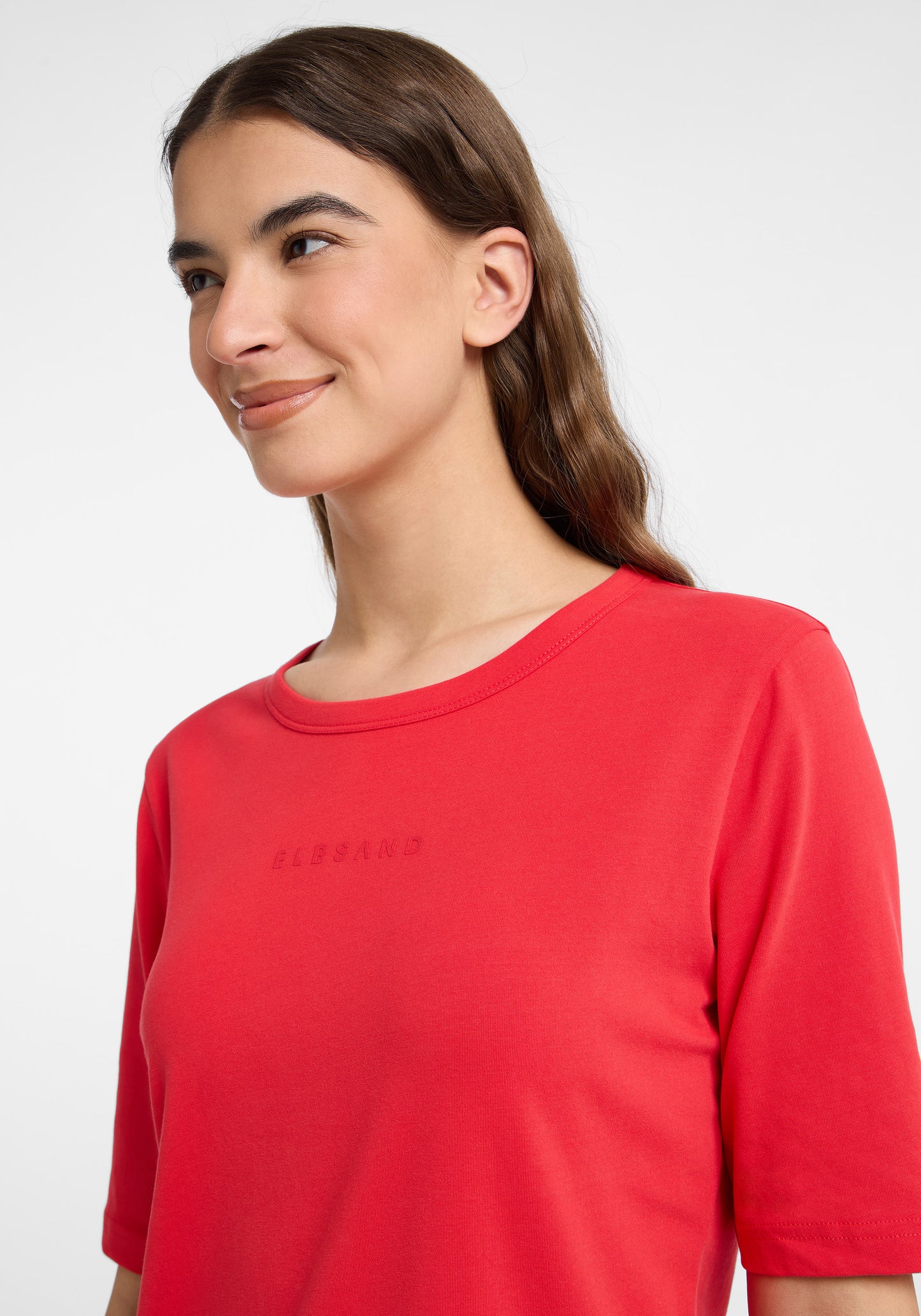 Het Elbsand Siva T-shirt is een nauwsluitend, stijlvol basic T-shirt voor dames. Het bestaat uit een zachte, elastische Single Jersey kwaliteit met 95% katoen en 5% elastaan, en biedt daardoor een prettig draagcomfort en een perfecte pasvorm. Het T-shirt heeft een klassieke ronde hals en halflange mouwen, waardoor het veelzijdig gedragen kan worden in elk seizoen. Een subtiele, zachte rubberprint op de borst zorgt voor een fijne, ingetogen accent. Het Siva T-shirt combineert minimalistische stijl met hoogwaardige afwerking en is ideaal voor dames die comfort en modieus design waarderen. Wasvoorschriften: machinewas op 30 graden, fijnwasprogramma, niet geschikt voor de droger.