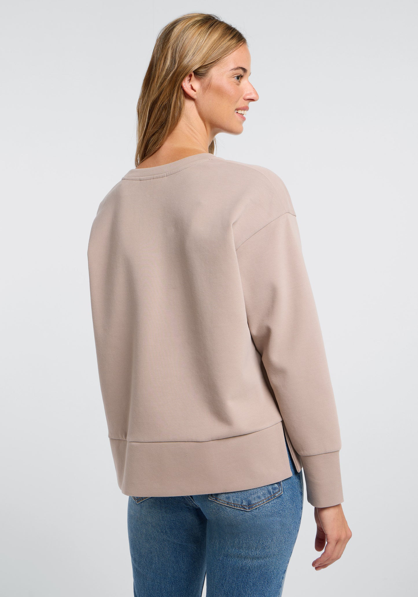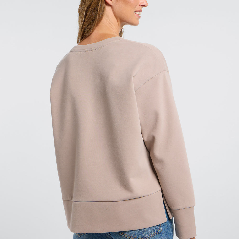 Met een ronde hals, verlaagde schouders en een brede zoom met zijsplitjes overtuigt Tove met moderne details. Een hoogwaardige, zachte rubberprint op de voorkant vormt een subtiel accent en geeft het sweatshirt een bijzondere look die sportief en tegelijk stijlvol oogt.